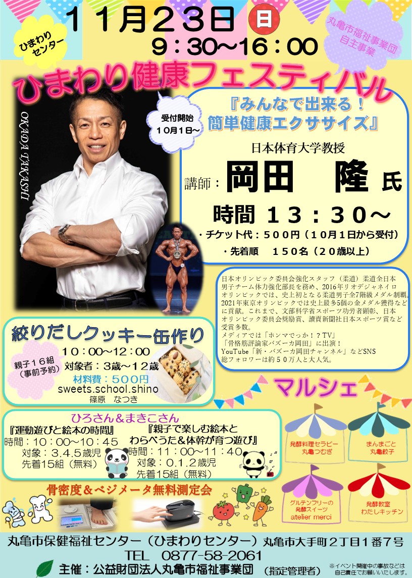 11/23(日)、ひまわりセンターで健康フェスティバルが開催されます。