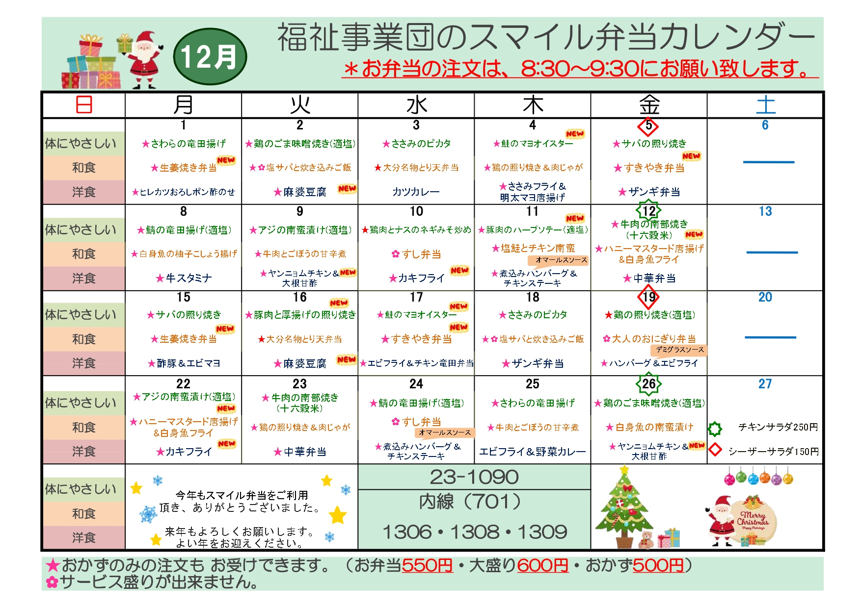 - お惣菜は時期により変更になることがあります。