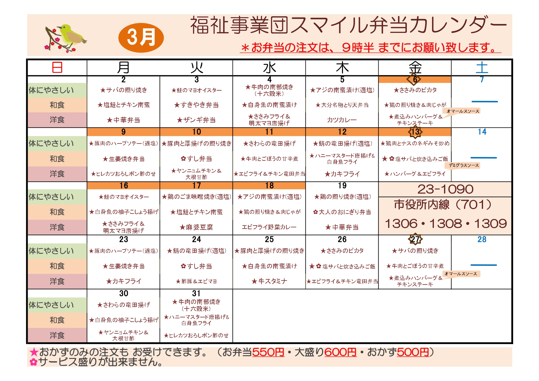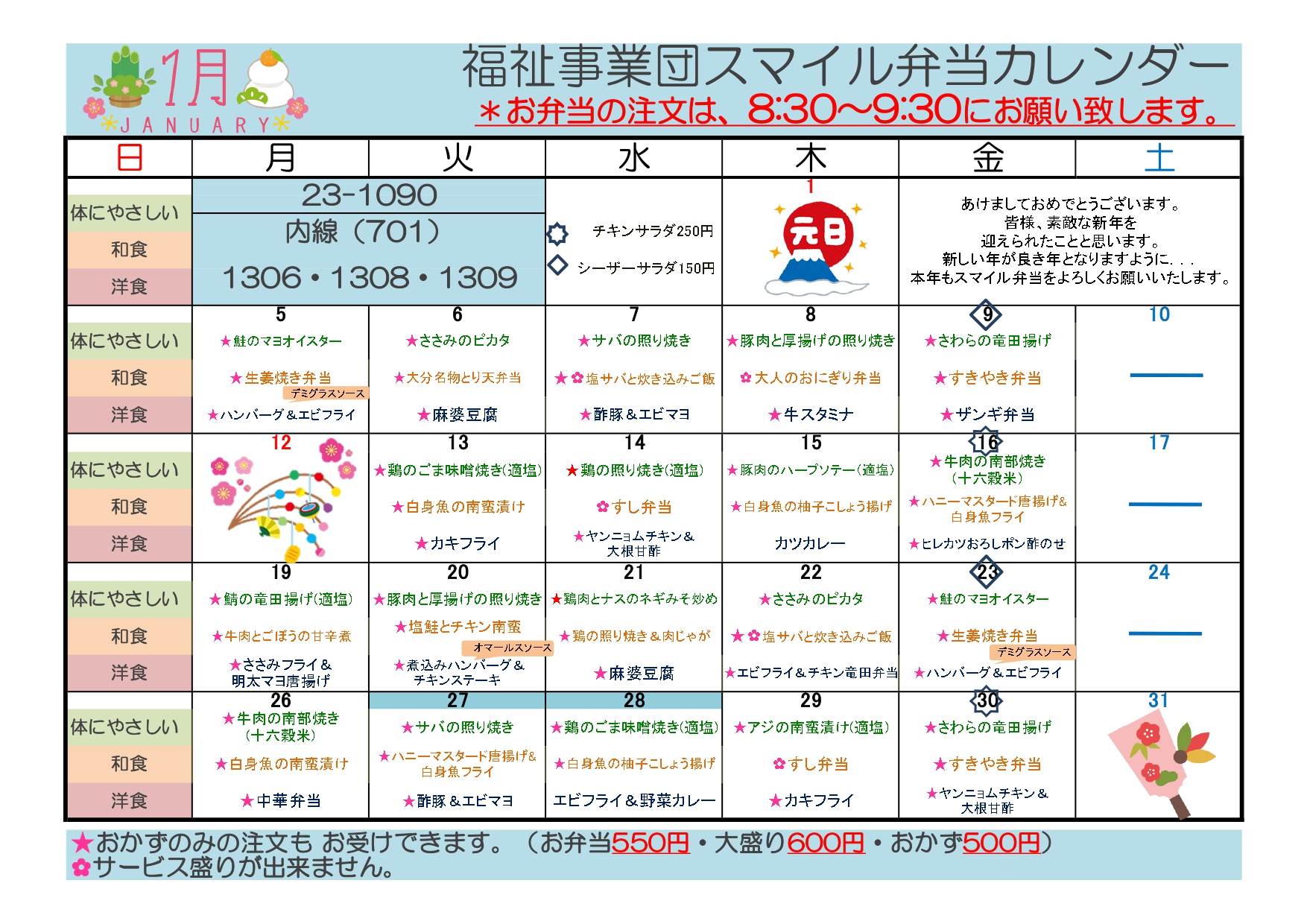 - お弁当は配達日より4日前までにご注文ください。